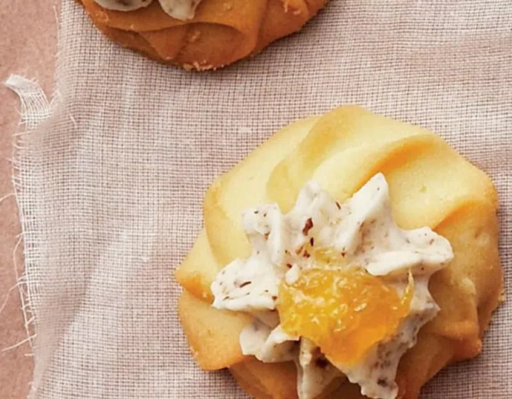 7 Using the piping bag with a star nozzle, pipe the icing on the cookies and let it set for 2 hours.