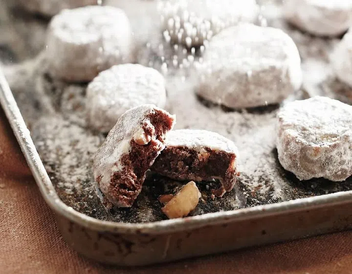 8 Remove the cookies from the oven and cool. Roll in icing sugar to coat them evenly.