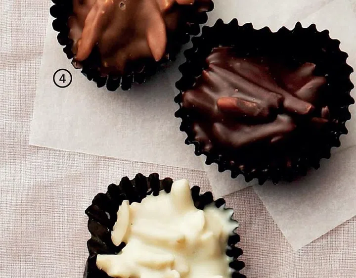 4 Use a spoon to scoop and form pieces of chocolates. Place on silicon paper. Set aside for 10 min to harden.