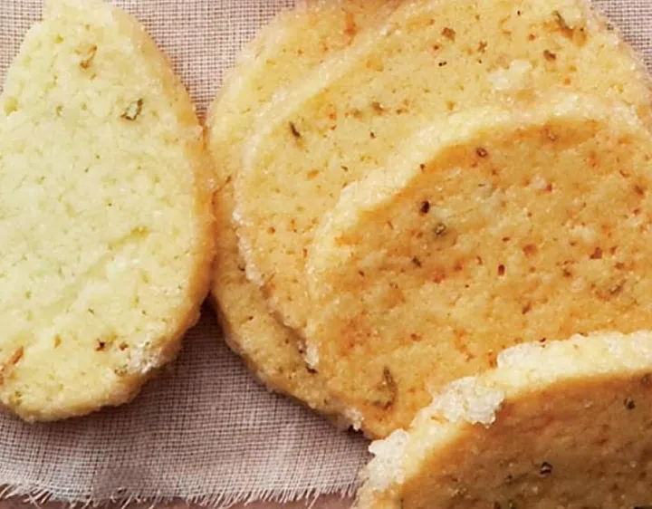 1 Mix all the ingredients for the shortbread in a mixer to make a dough.