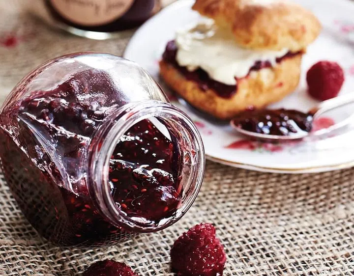 1 Mix all the ingredients in a pot and chill overnight to draw out the pectin from the raspberries. Pectin is a gelling agent for jams which is found in some fruits.