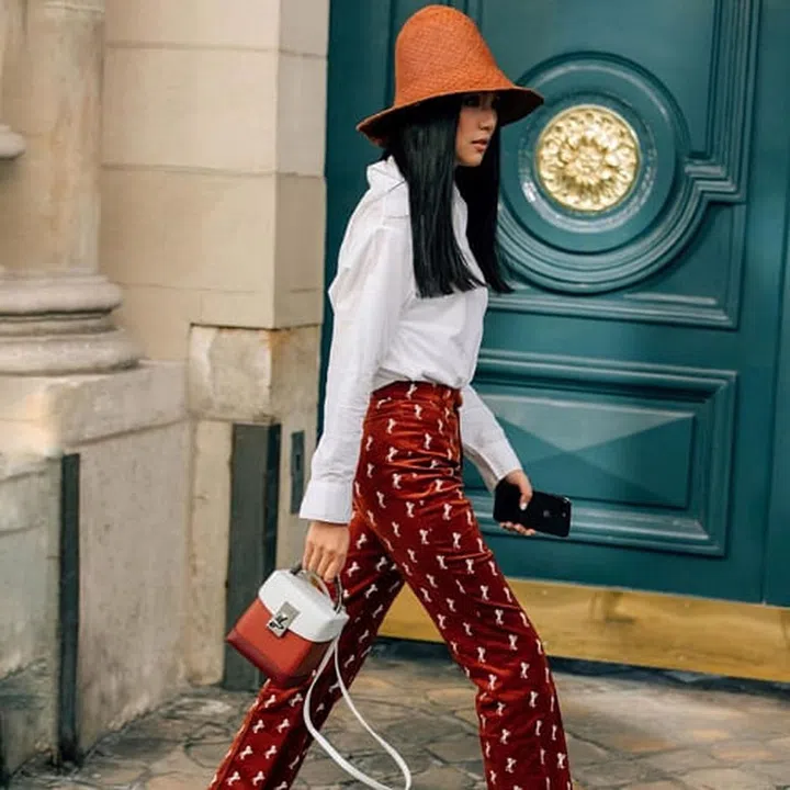 Don’t be afraid to incorporate splashes of masculinity into your Lunar New Year ensemble — it creates an interesting twist to your overall look, giving it extra oomph. Channel the androgynous vibe by pairing a white shirt and printed statement pants combo with girly accessories, like a ladylike purse and a pair of heeled booties. Don a sun hat to protect your skin from the harmful rays.
