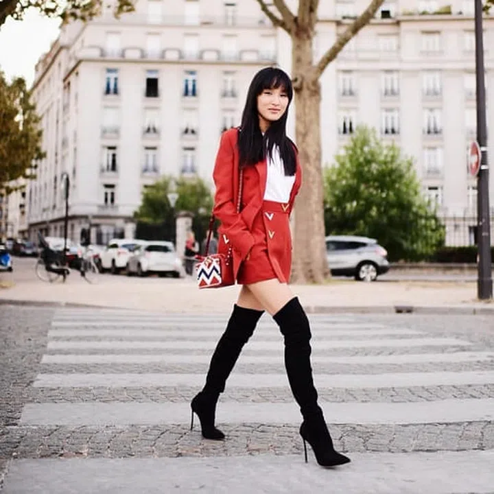 A pant-suit may be too much for our boiling weather, so go for a skirt-suit. It’s an easy ensemble to pull together — just purchase a set and wear a breezy white cotton tank underneath. Nicole Warne of @garypeppergirl rocked thigh-high boots for her #OOTD, but we recommend you go for a pair of chunky wedges that are equally dazzling.