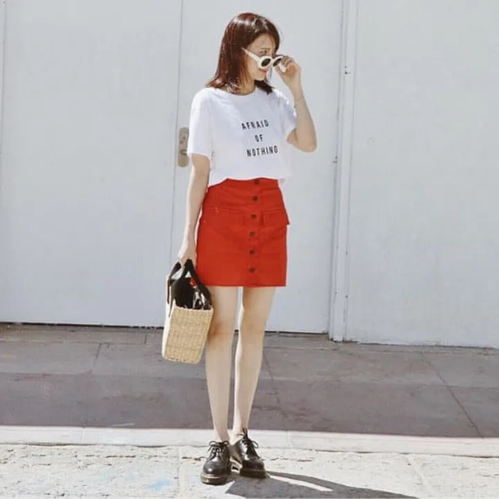 The combination of a t-shirt and a skirt never goes wrong. But don’t settle for something boring. Play things up with a printed top or a piece that has interesting details on its sleeves or neckline. Make sure your skirt is in an interesting shade. Pair that with a breezy straw bag and don a pair of black brogues for that casual cool vibe.