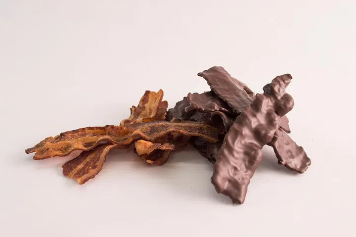 The new thing ─ we're praying this sparks off a trend ─ is deep-fried bacon encased in a dark chocolate shell. It was every bit like you'd imagine it to be ─ crisp, salty, caramel-like, with a tinge of char.