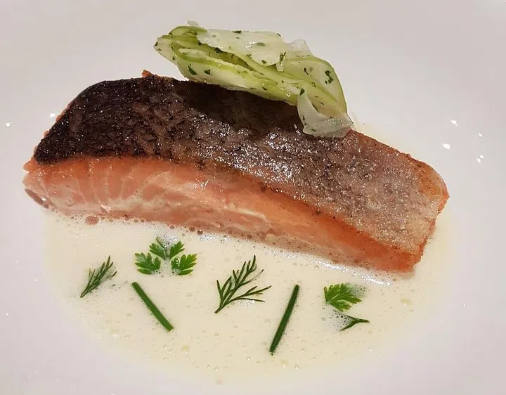The white chocolate hollandaise was amazingly ethereal, with a soft citrus tang that played marvellously well with the salmon fillet. A 24-hour brine helped to dial down the heaviness of the salmon, and the sous vide treatment kept it a perfect supple pink, leaving just a sliver of fatty flavour in the form of the crisp, pan-seared skin.