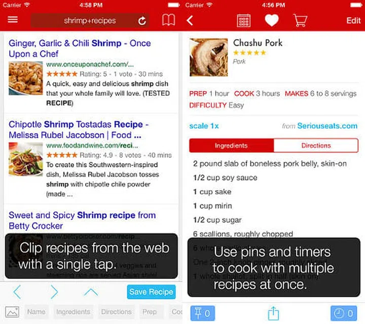 • When you’re looking at a recipe, Paprika will automatically prevent your screen from locking. If you’re prepping more than one dish at a time, you can “pin” the recipes so you can flit back and forth easily.