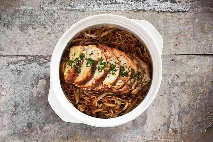 Ee-fu noodles, festive? We were eating our words – and oodles of noodles – with this truffle oil-anointed version, served with tender slices of roasted turkey roulade.