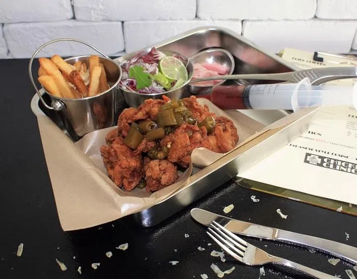 Call it gimmick all you want, but the fried chicken served at the Chicken Clinic is pretty high on the awesome scale. The fried chicken, in keeping with the clinical theme, is served in a surgical tray and a syringe filled with chilli sauce. We love the Chicken Nanban ($18.50), which features boneless chicken chunks that are topped with pickled jalapenos and glazed in spicy soy sauce. And they were served with a side of fries, salad and pickles. The chicken could be crispier, we have to admit, but we give the flavours a thumbs up.