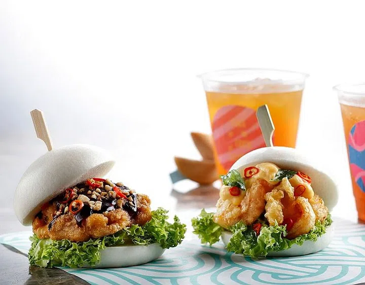 Toasted “mantous” (Chinese buns) were used to substitute the brioche buns or the sesame topped buns we usually see in burgers. The fillings for these mini baos (buns) are special too. You choose from five Asian-inspired flavours, but we love the salted egg yolk prawn and the kung pao fried chicken best. The former features prawns slathered generously with the much-loved salted egg yolk sauce, while the latter is adapted from the classic kung pao chicken dish and comprises spicy fried chicken with lettuce, dried chilli and crush peanuts.