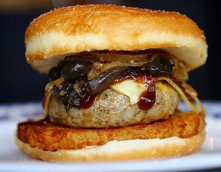 Don’t have room for desserts after your mains? You won’t find a problem with this burger which combines the best of both worlds. Sandwiched in between two donuts dredged in sugar is either a chicken or beef patty, which is then topped with hashbrowns, mushrooms, caramalised onions, cheddar cheese and BBQ sauce. This gives the burger a sweet and savoury combination that you can’t help wanting more.