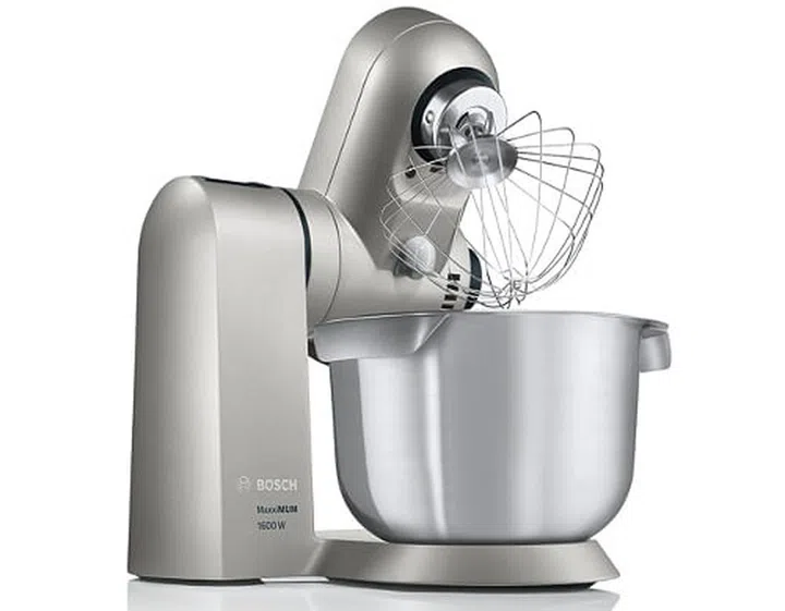 The Bosch Maxximum Sensor Control Kitchen Machine is a stand mixer with attachments to turn it into a blender and a food processor – a machine to do ever ything, from mixing cake batter to chopping onions.