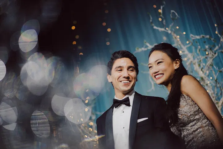 Sheryan & Mark's celebrated with a chic all-white wedding dinner at Raffles Hotel here.