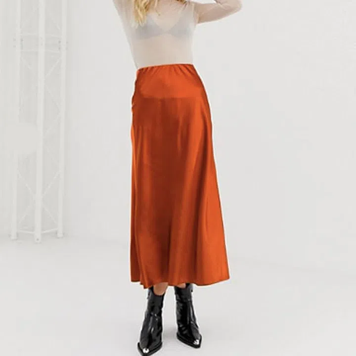 Simple, yet not understated. This rust-coloured silky skirt looks like it could have come straight from the ‘90s with its sexy nonchalance.