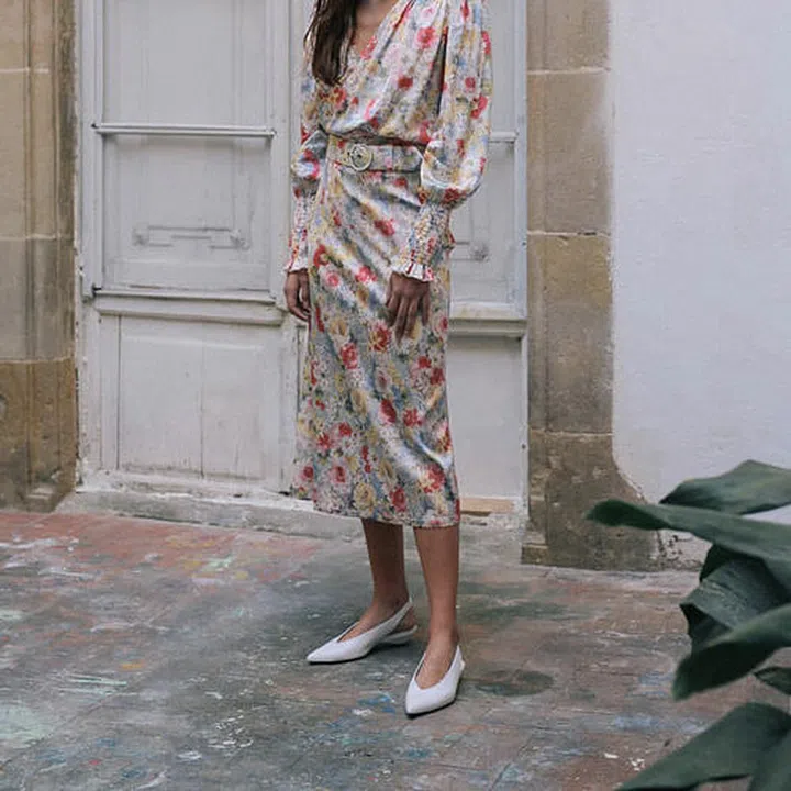 Team it with a pair of classic mules and a puff sleeved top for a dreamy look.