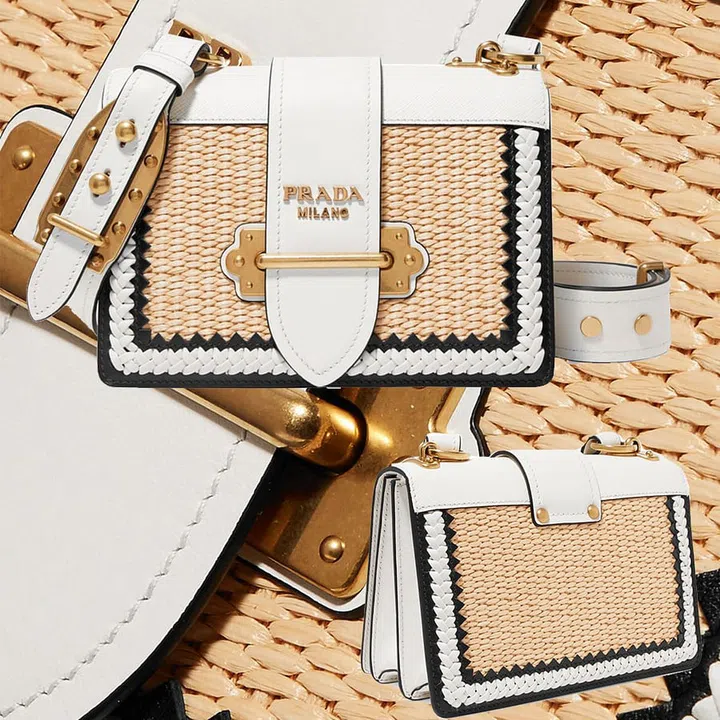 Prada Cahier whipstitched leather and raffia shoulder bag, US$2,950 (S$3,892)