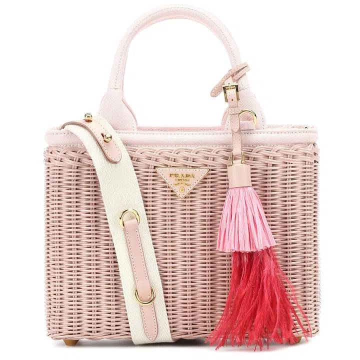 Although this basket-inspired bag – crafted from woven bamboo – is very structured, it is all-fun too thanks to its light pink hue and the pastel leather and feather tassels that soften it up. You’ve a choice to either carry this bag by its attachable white shoulder strap, or you could carry it just by its pink handles.