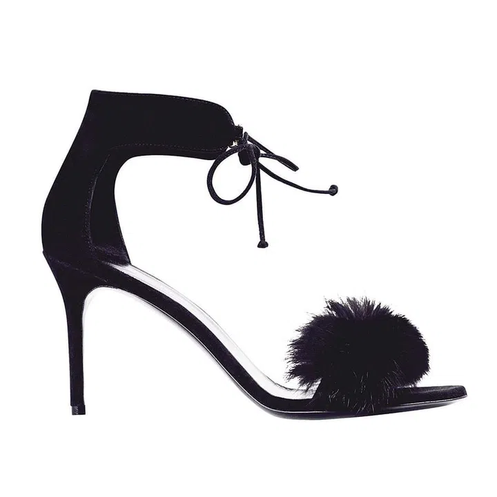 We're particularly smitten with this pair of goatskin, velvet and fur strappy sandals priced at $905.