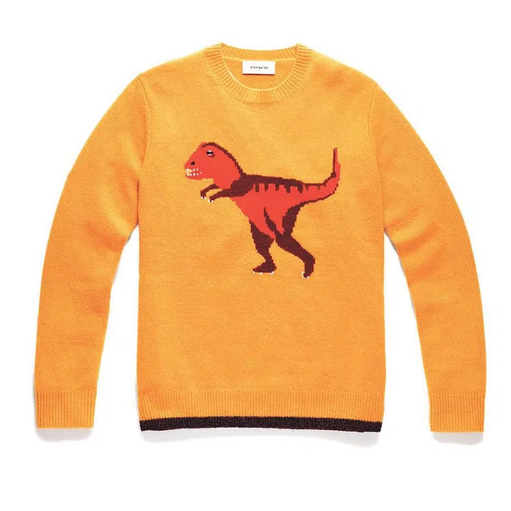 Coach brings back joy, magic and the fun of gifts with Coach mascots Rexy and Sharky joined by Uni, Froggy and Doggy adorned on cashmere sweaters, T-shirts and canvas tote bags.