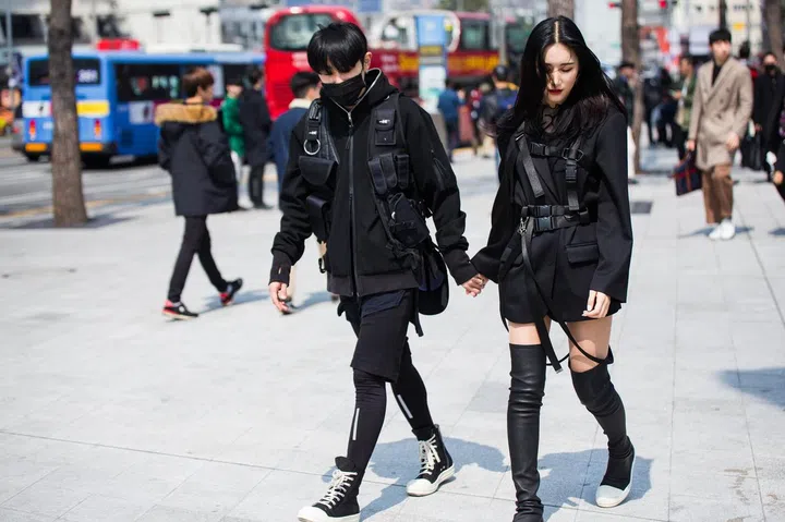 Black, black and more black... but we’re not complaining. The Koreans just have a knack for making full-black #OOTDs work; the trick seems to be in focusing on textural details and lots of layering.