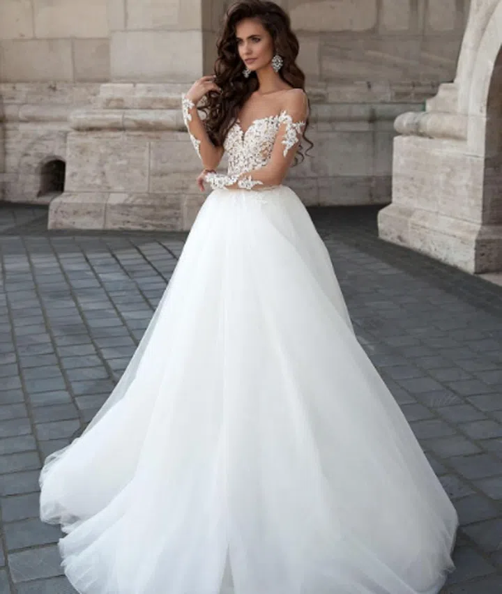 If you're toying with the idea of donning sleeves, this gown which exudes both feminine elegance and sultry charm gets our thumbs up.