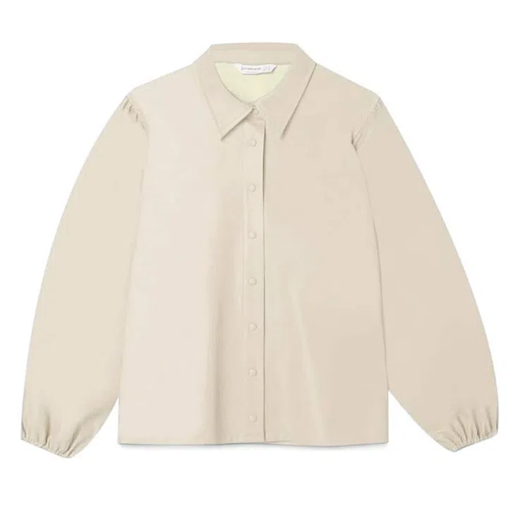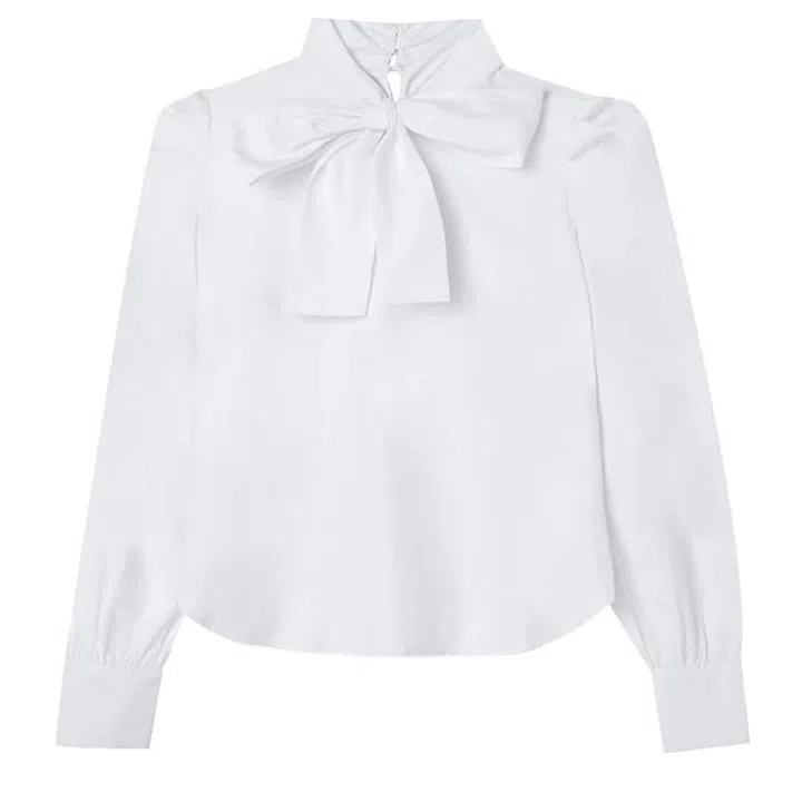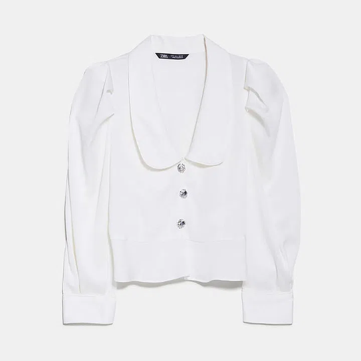 From the rounded collar, puffed shoulders to the gem buttons, this white shirt ticks all the right boxes.