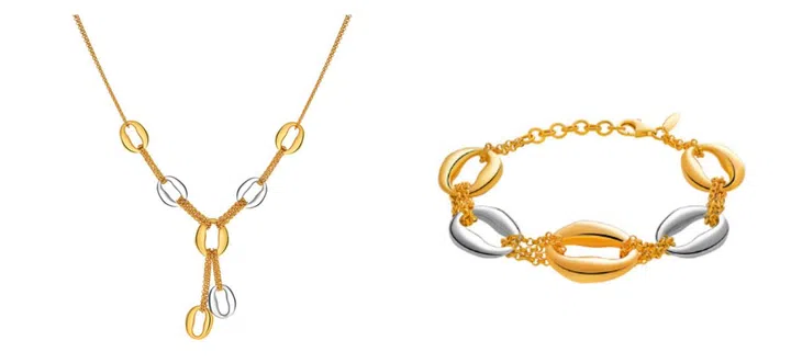 From left to right: 916 gold necklace, $3,938 & 916 gold bracelet, $1,965