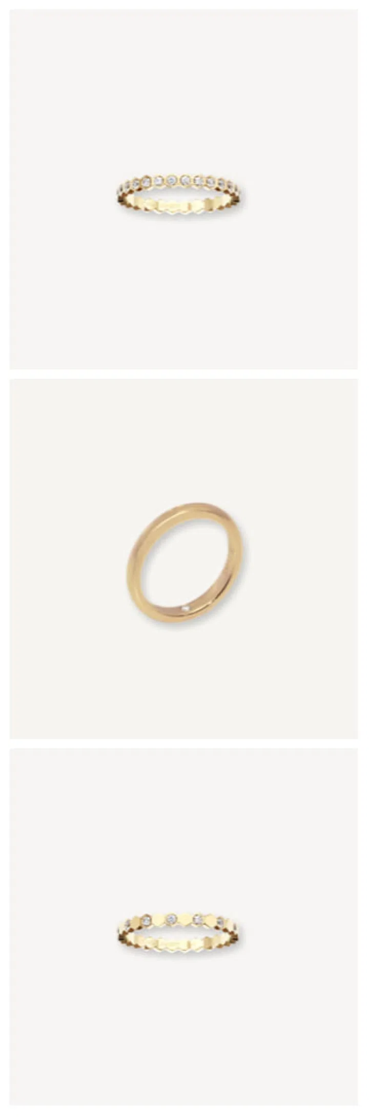 From top to bottom: Bee my love ring in 18K carat yellow gold, Fidelite wedding band in platinum, Bee my love ring in 18K carat yellow gold