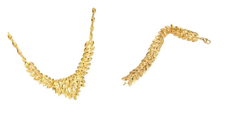 From left to right: 22K yellow gold necklace & 22K yellow gold bracelet