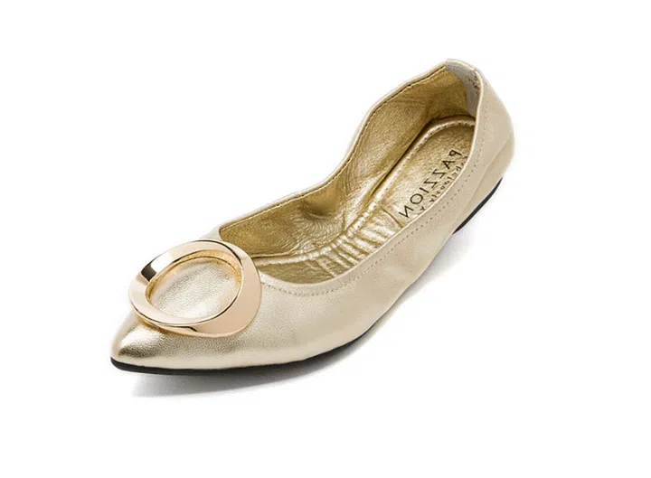 The creation of foldable flats have brought much relief to the general female population. Take light, sophisticated strides this Chinese New Year with Pazzion's rendition - featuring smooth leather in a light gold sheen adorned with a circular gold buckle at the vamp. It comes with a small, foldable bag so you can switch out your heels after your ceremony with ease and convenience.