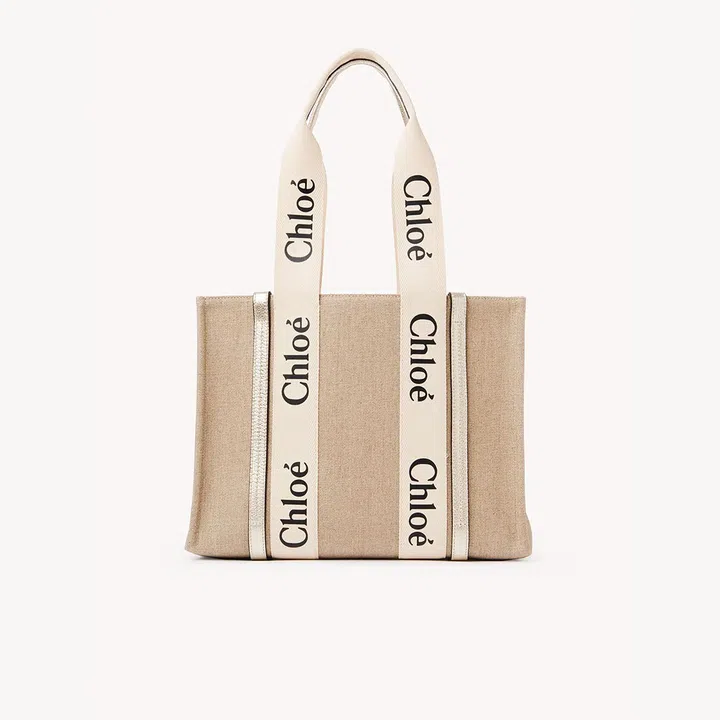 Made from linen detailed with metallic calfskin and sturdy handles, Chloé’s Woody Tote Bag is a stylish addition to any wardrobe.