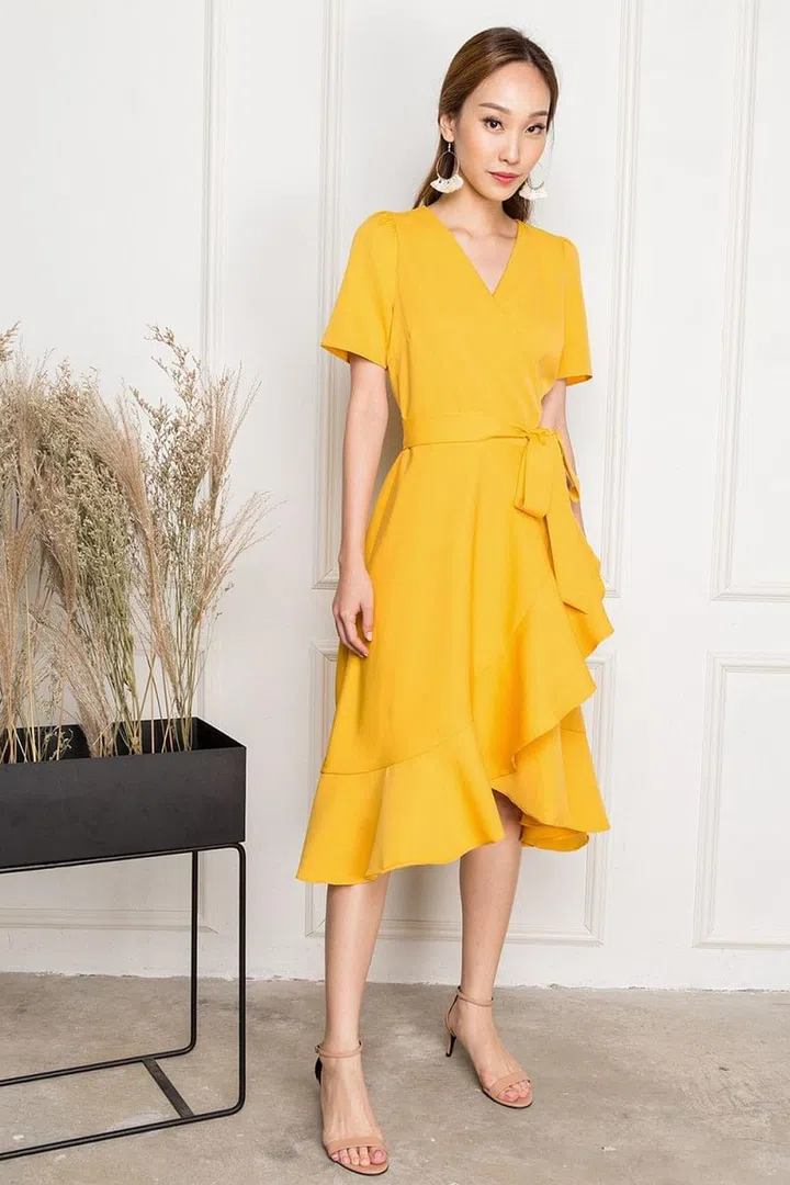 Wrap dresses are currently trending with its flattering and contemporary cutting. The Kora's cheery marigold hue is perfect for summery themed weddings and we can think of plenty of stylish accessory choices that will go well with the design.