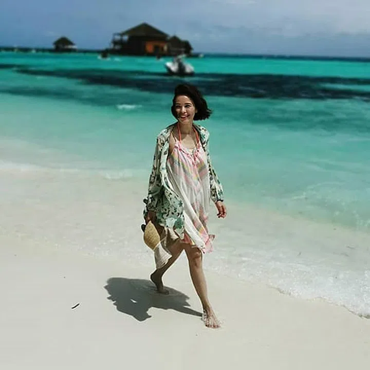Wearing a tank top with a pair of denim shorts to the beach is so passe. Since it's #flashbackfriday, do it like how Zoe Tay did it when she visited Maldives in June. Her throwback photo depicts a pastel printed sundress, a loosely fitted jacket and a floppy straw hat.