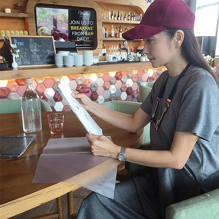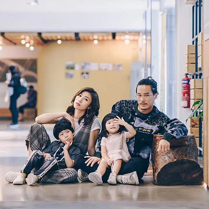 We are obsessed when a celeb matches her outfit with her family. Over here, Kate Pang rocked the monochromatic hues of white, grey and black immaculately with her husband, Andie Chen, and her two children, Aden and Avery. We love.