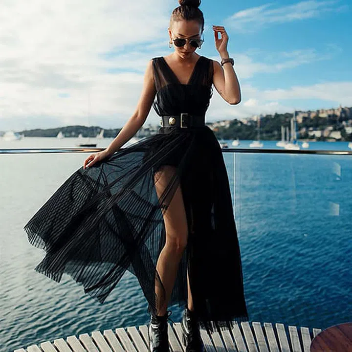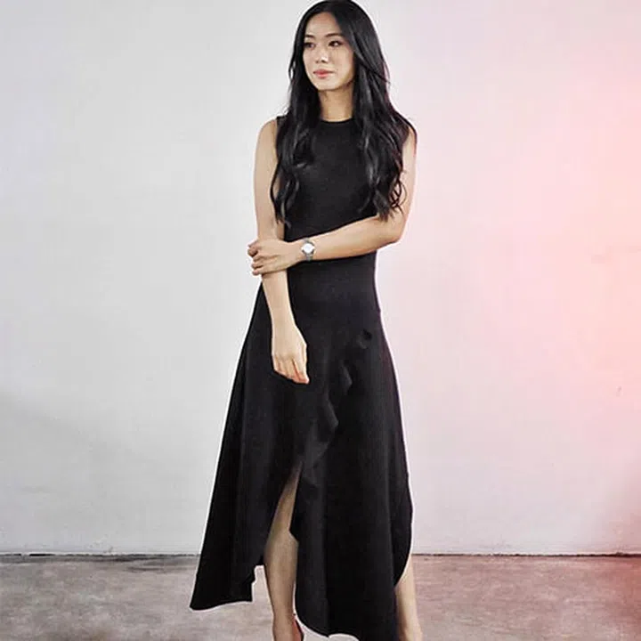You can never go wrong with a black dress. Take a look at Rebecca Lim over here, where she’s rocking a lightly ruffled number that’s so understated, but looks so effortlessly good. However, don’t go overboard with your accessories: a simple pair of black pumps and a silver watch is enough.