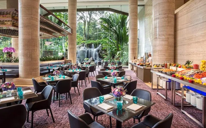 Enjoy a delicious meal while soaking in the tranquil ambience at The Dining Room, which houses a cascading waterfall and a lush landscaped garden.