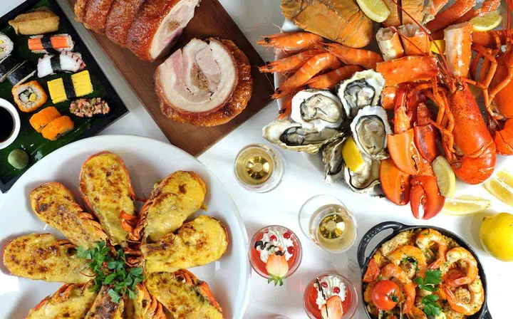 A delectable spread of international and seafood specials await if you’re having your celebratory meal here, including freshly-shucked oysters, king crabs, poached lobsters, prawns, mussels and scallops on ice, appetisers such as Smoked Salmon with Sour Cream and Chive and Prosciutto with Melon and Arugula. The highlights are the mains of course, which include Grilled Lamb Chops with Mango Chutney and Focaccia Crust, Pan-seared Seabass with Mediterranean Salsa, BBQ Chicken Kebabs, Honey & Clove Glazed Bone-in Leg Ham and Slow-roasted Sirloin in Port Wine Sauce.