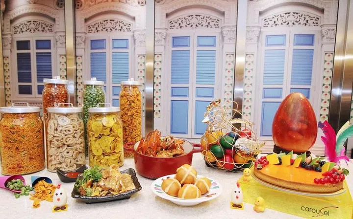 Local heritage dishes and old school snacks reign at this buffet spread, with a slight twist thanks to Easter.