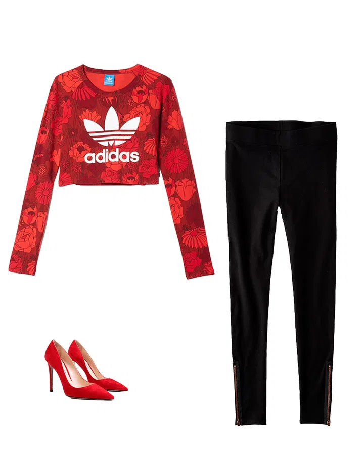 Bright red has always been and always will be the sexiest colour in the rainbow! This sportswear inspired look is super sexy but has a casual but stylish look thanks to the classic red Prada stilettos. Photos: Adidas, American Eagle Outfitter, Prada/Net-a-Porter.com