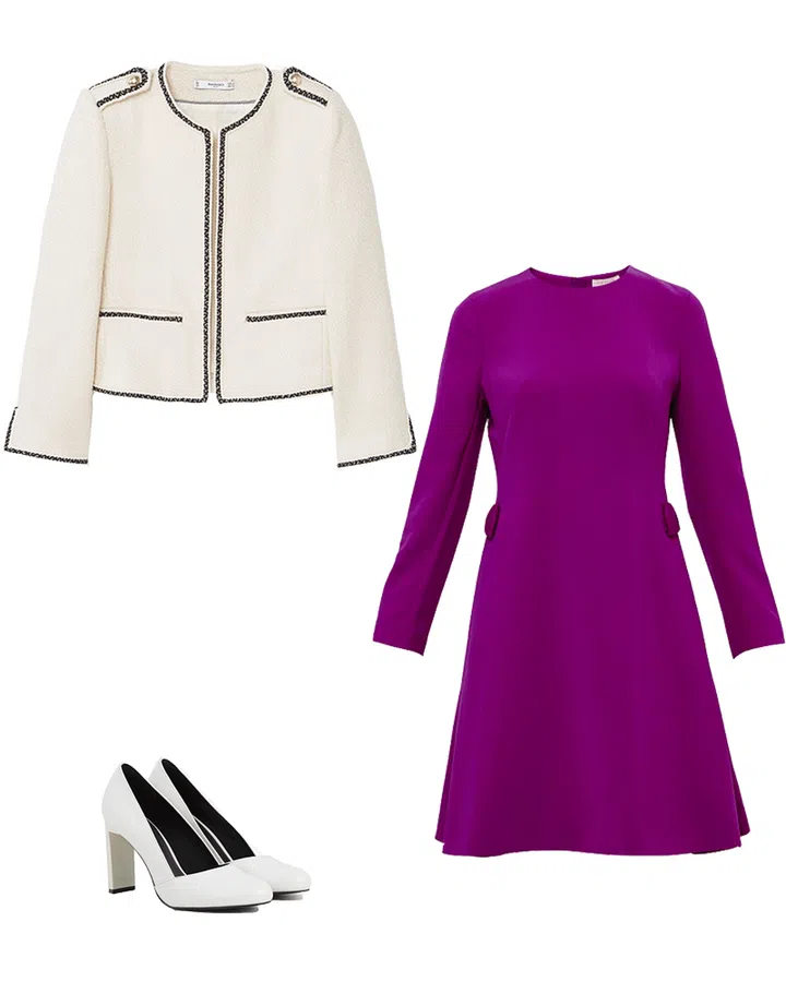 Purple definitely has got to be the hardest colour to match with, which is probably why you wouldn’t ordinarily wear it. Pair this outfit with a white statement bag of your choice and you’re set! Photos: Ted Baker, Mango, Charles & Keith