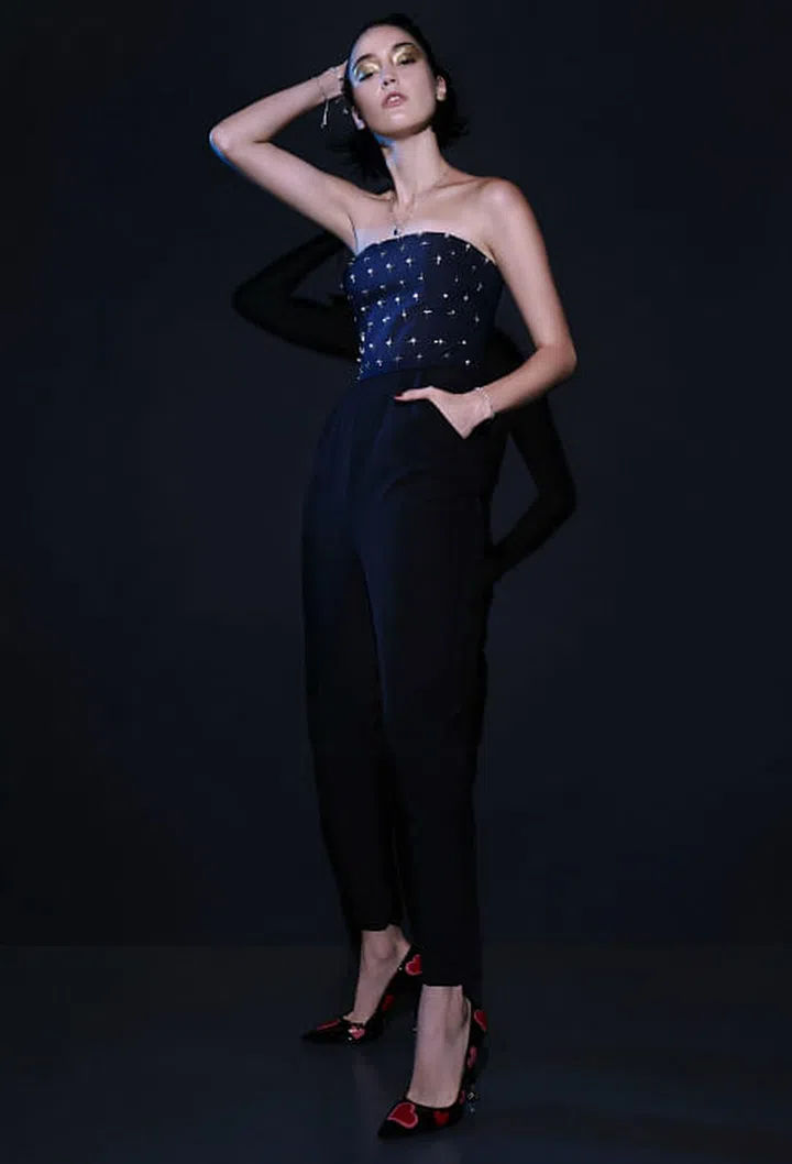 We love the way this jumpsuit has just enough bling on the bodice to make it party perfect. Wear a blazer over the top - or a white button up shirt underneath - for the office then party away after hours. Saida wears Cotton-blend jumpsuit, GBP225, Iris and Ink from theoutnet.com; Calf Leather Heels, $1,650, Prada. Plus her jewellery includes the Lexi, $870, Quentin, $990, Electra, $1,560, pieces and a Pear shape blue sapphire pendant, $860, Heart shape white diamond pendant, $390, Princess cut canary yellow diamond pendant, $780, all from Carat* - available at the Ladies Accessories Department, Level 1, Takashimaya.