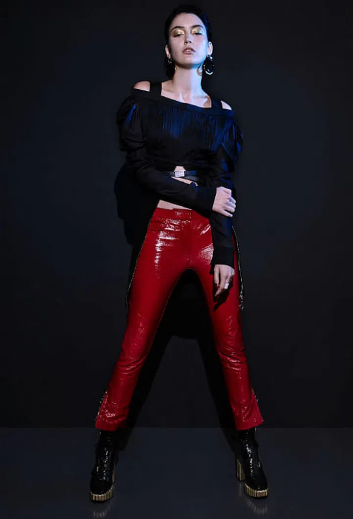 If trousers are more your style, go for a pair in a super strong colour - if they’re also shiny that’s even better! Saida is wearing Black Zipped Dress,POA, Louis Vuitton; Red Leather Pants, POA, Louis Vuitton; Clip-on circle earrings, Marni; Skin Ring Set, $590, Louis Vuitton; and Buckle boots, $2,400, Christian Dior.