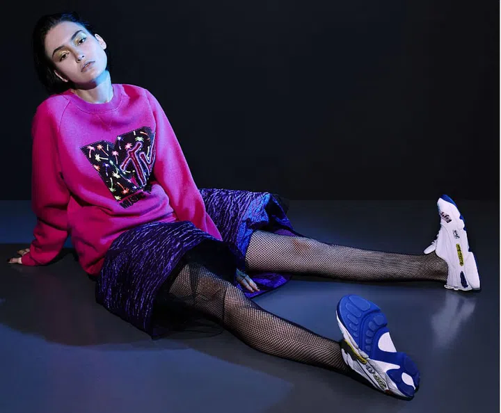 We love throwing something together and hoping for the best - no, really we know what we’re doing!. The whole ‘Vetements’ trend of oversized tees and sweatshirts is perfect for a fun 80s style party look … And sneakers and you really can party ‘like it’s 1999’. Saida wears Wool ‘MTV” Sweatshirt, $2,600, Marc Jacobs; Soie-blend tulle skirt, $1,750, Marc Jacobs; and Fusion White Sneakers with Embroidery, $1,850, Christian Dior.