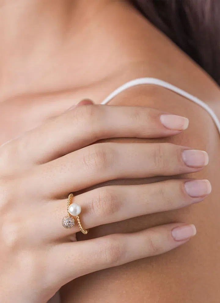 This rose gold metal plated ring with pearls and Swarovski crystal is quite stunning. The ring’s inner diameter is 1.64cm - a US size 6 or a Singapore size 11 - and the size is slightly adjustable. Wear this to really stand out when you’re doing Loh Hei. Shop this ring at accessories.sheshops.com/rings/swarovski-crystal-n-pearls-ring