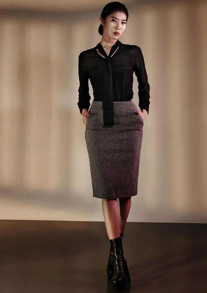 OK, we just love how elegantly French this look from the Uniqlo x Carine Roitfeld FW16 Collection is, don’t you? Sohee is wearing Carine Roitfeld silk bow tie long sleeve blouse, $99.90, and Carine Roitfeld tweed pencil skirt, $59.90. The Uniqlo x Carine Roitfeld FW16 Collection is now available at Uniqlo Orchard Central and online at www.uniqlo.com/sg/carine-roitfeld.