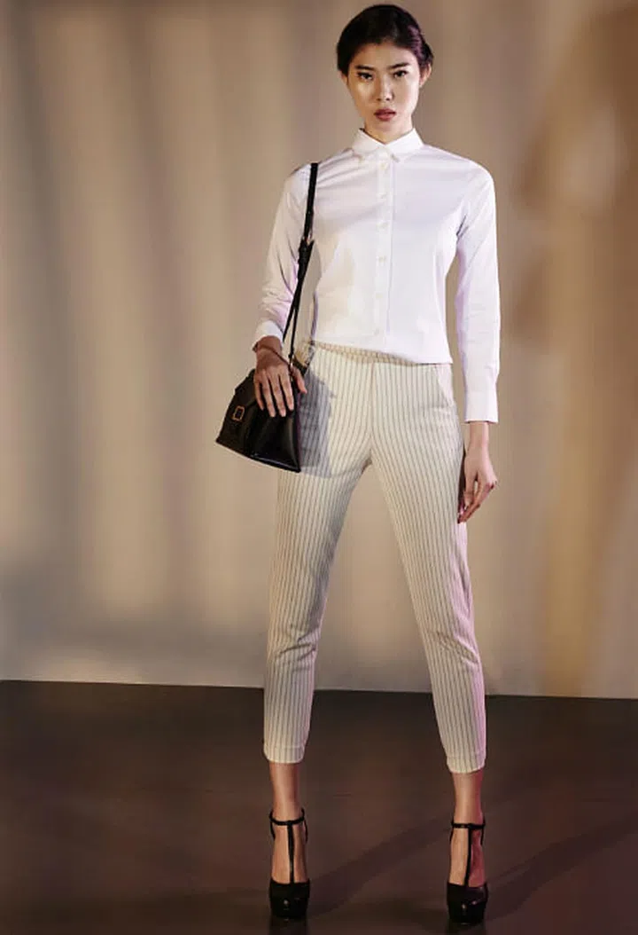 Sohee is wearing Uniqlo Supima Cotton Shirt, $49.90, and Uniqlo Jogger Pants. This is another easy work outfit that you can ‘warm up’ with one of Uniqlo’s Heattech long-sleeve t-shirts, $19.90, underneath thanks to the fitted shape, scoop neck design and three-quarter sleeves that stay hidden under the outer layers. Shop the t-shirt at www.uniqlo.com/sg/women-heattech-scoop-neck-t-shirt. Remember: Heattech is available in three different ‘warmths’ ie. Heattech, Heattech Extra Warm and Heattech Ultra Warm - the warmest of the three types.