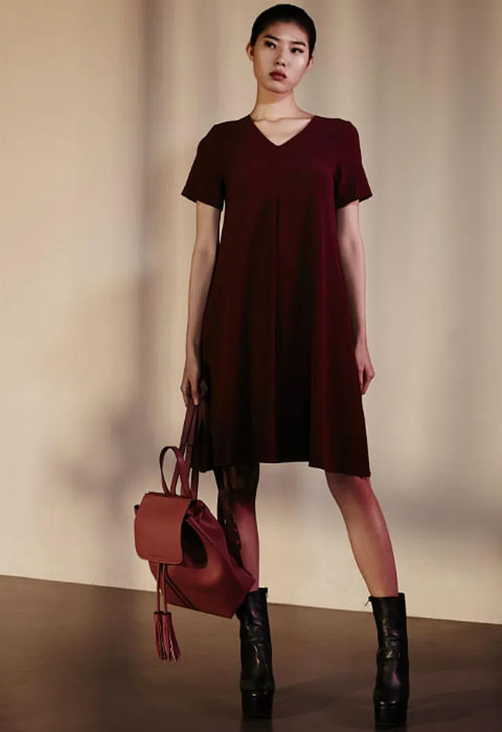 We have to say we were amazed at how well-cut this Uniqlo Crepe V-neck Dress, $39.90, is … It sits really well on the body, don’t you think?