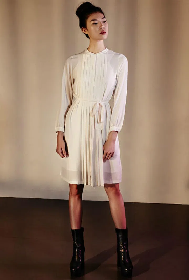 We can’t believe how expensive this dress looks! Sohee is wearing Uniqlo Georgette Pleated Dress, $59.90.