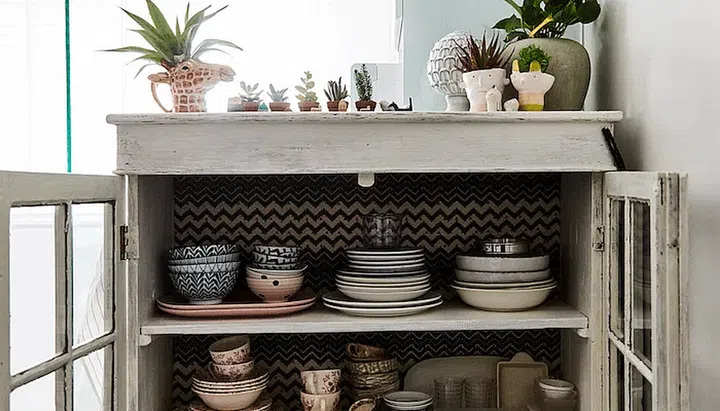 Jeremy bought a cabinet from Originals for his kitchen to stash his tableware. “I painted it white because I wanted to enhance its rustic look,” he says. The vases which he uses for his plants are from a Thai clay maker.