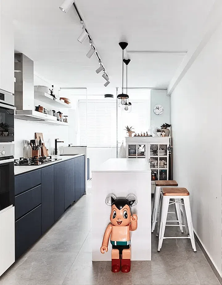 The marble-look quartz surfaces add an elegant touch to the kitchen design, and the open shelves are where Jeremy displays his collection of tableware. “Yes, I love bunnies. I first started collecting rabbit figurines during a trip to Korea, when I chanced upon a charity advocating against animal abuse and learnt more about its efforts to save stray dogs. As an animal lover myself, I wanted to play a part by donating, and the souvenir in return was a rabbit figurine. I’ve never stopped collecting since.”
